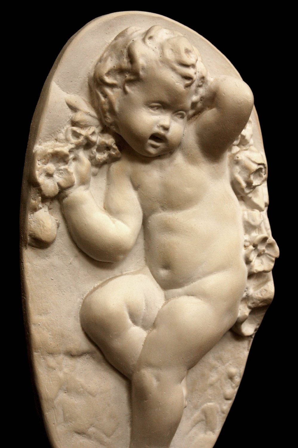 Here you will find our selection of small relief sculptures under 12 inches. They come with an embedded hanging hook. The reliefs date from antiquity to the early 20th century. A relief is a sculpture in which the image protrudes from the background, in essence making it both two-dimensional and three-dimensional. Bas-relief, or low relief, means the image is only slightly raised. Alto-relief, or high relief, means the image has much more depth and at times could be almost completely in the round. Sunken relief, or incised or intaglio relief, mainly applies to ancient Egyptian art; the low-relief image is placed in a sunken area so that nothing projects beyond the surface.